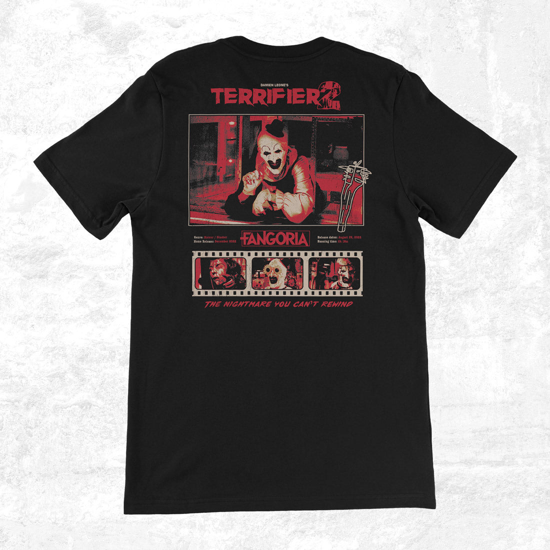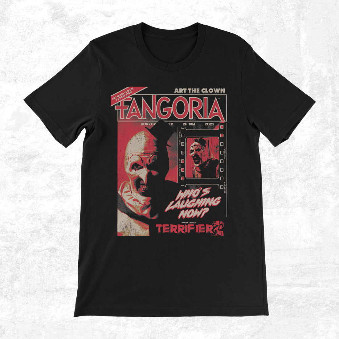 Bring the chaos of Terrifier to your wardrobe with this officially licensed Art the Clown T Shirt by Fangoria. Showcasing horror’s most disturbing modern icon, this 100% cotton tee is made for fans who like their scares bloody and unforgettable. Each shirt includes an exclusive collectible sticker, making it an essential piece for horror collectors and die-hard fans of Art the Clown.