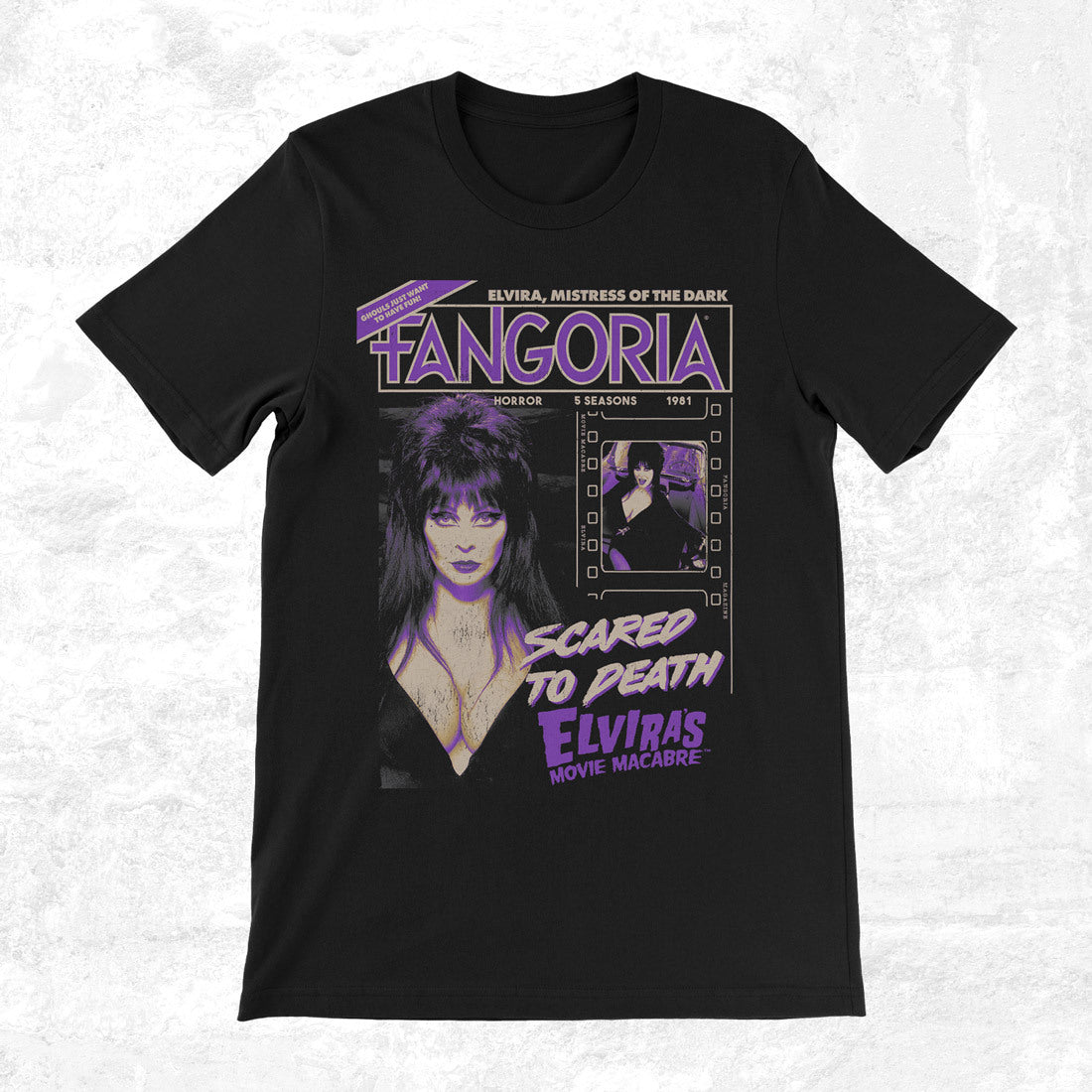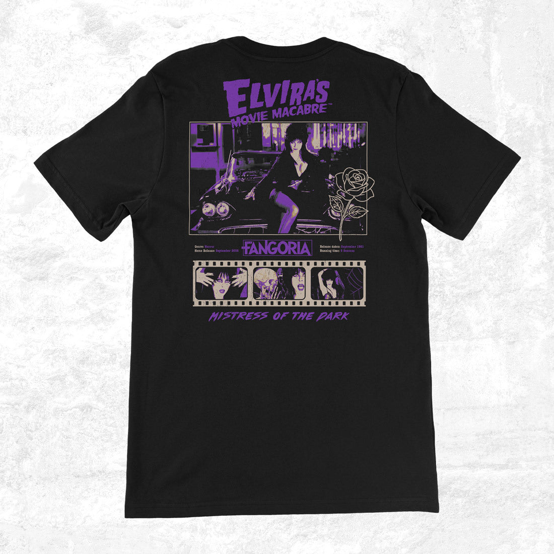 Ghouls just want to have fun! Pay homage to the Mistress of the Dark herself with this officially licensed, exclusive Elvira's Movie Macabre T Shirt. Made with 100% cotton, striking purple accents, and a hangtag with a matching collectible sticker, this iconic Fangoria tee will have you scared to death!